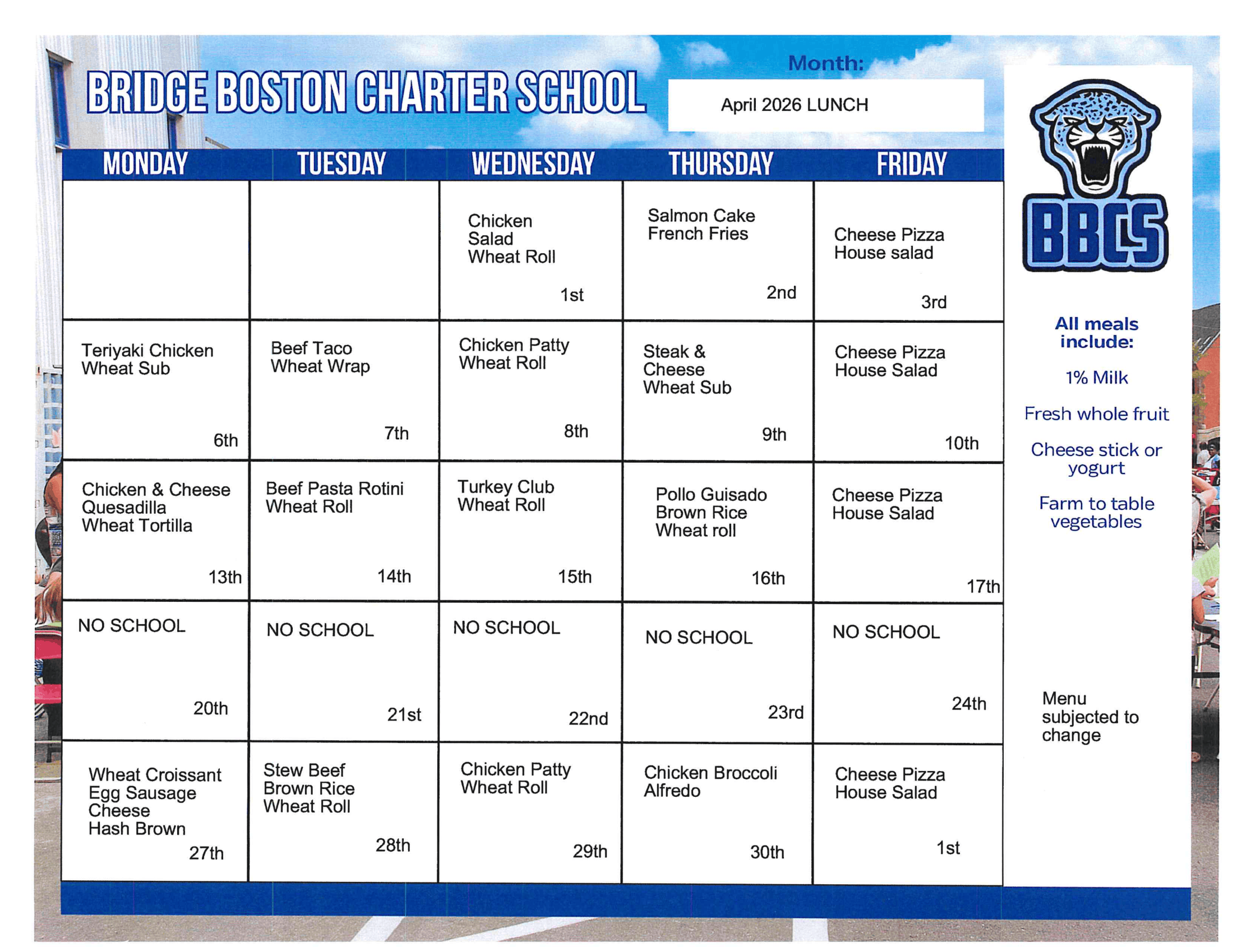 Bridge Boston Charter School is pleased to announce our participation in the Community Eligibility Provision (CEP) of the National School Lunch for Free Meal Reimbursements in School Year 2023/2024. This special provision allows our school to provide breakfast and lunch at no cost for all students. This eliminates the procedure of distributing and processing meal applications and reduces administrative and printing costs. Families also benefit from the elimination of completing and submitting meal applications.